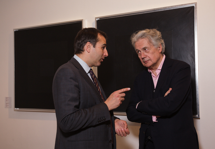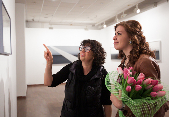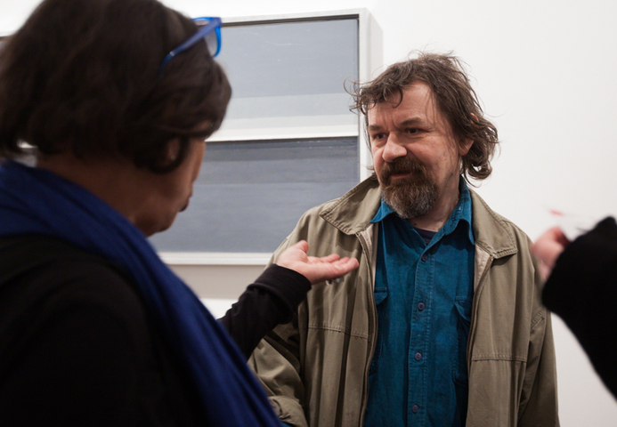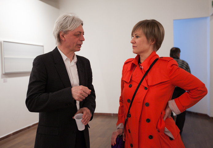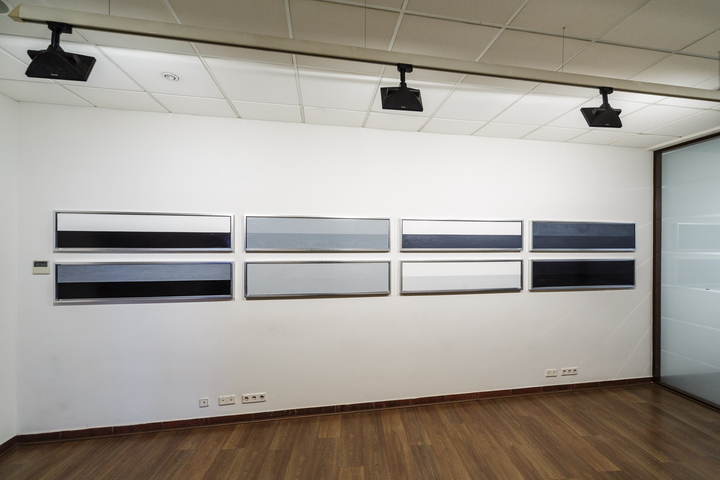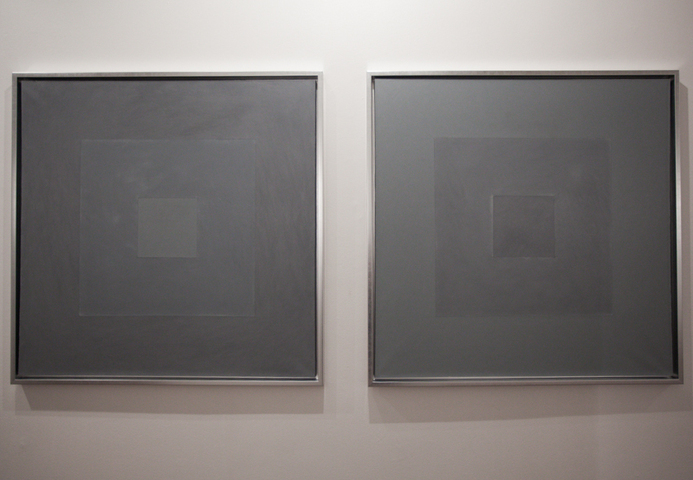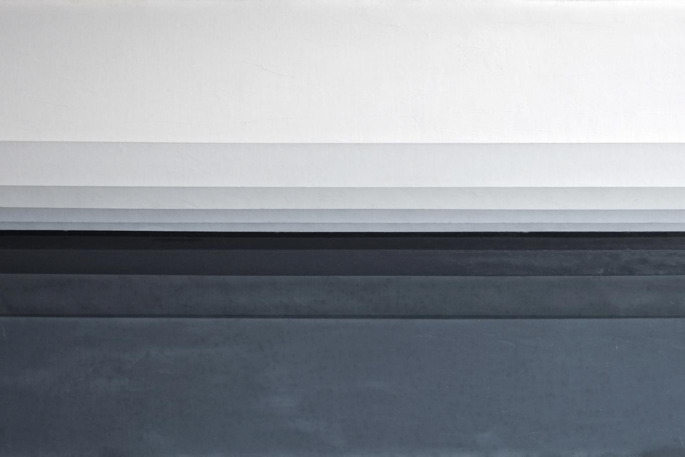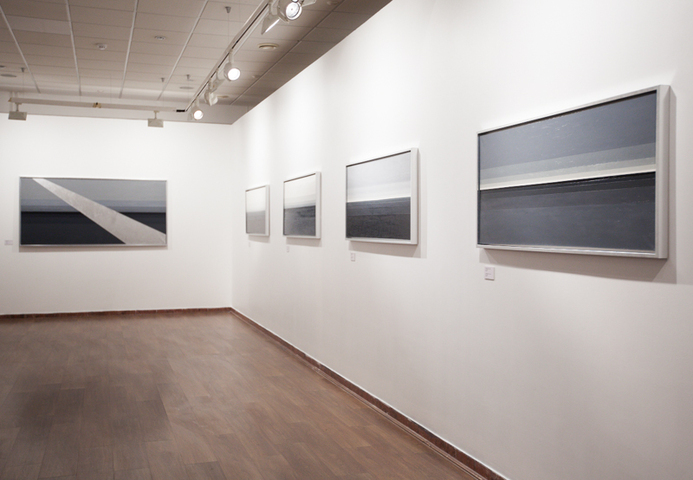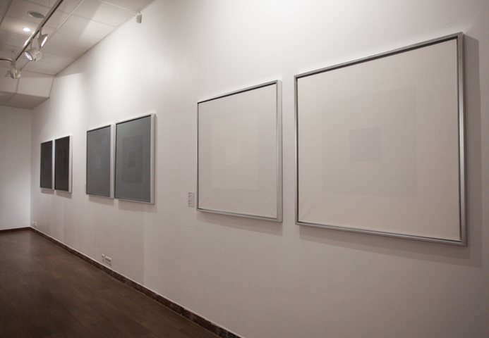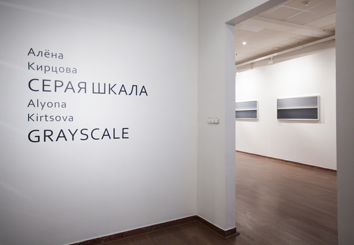 В своей третьей выставке в Stella Art Алена Кирцова использует технику гризайля для демонстрации серии редуцированных до краткости супрематической формулы пейзажных далей. Вся выставка представлена как набор лаконичных ахроматических рифм, в которых закодированы различные переживания бесконечного пейзажа. Кирцова называет серию и всю выставку «СЕРАЯ ШКАЛА», вводя в воображаемую даль своего рода градуированную тестовую таблицу, написанную мастихином — маслом по холсту. Знакомые для зрителя и знаковые для художника цветные горизонтальные полосы в её «Пейзажах» принципиально десатурированы, лишены спектральной яркости, переходя в категорию «бесцветных». Этот переход не обедняет живопись, но, напротив, приводит ее к монументальному выражению, в котором живописная картина приобретает качества лапидарности или «высеченности в камне» в точном переводе с латыни. «Дыры» — серия внутри серии, белые, серые и черные концентрические квадраты — переключают взгляд зрителя с линии горизонта в космос, где есть только свет и поглощающая его тьма. Просто и ясно. Как эпитафия.»