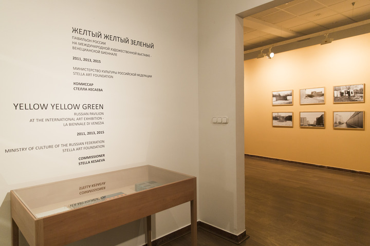 Экспозиция, посвященная выставочной деятельности Стеллы Кесаевой и Stella Art Foundation на Венецианской биеннале 2011, 2013, 2015 годов разделена на три пространственных зоны — по числу прошедших проектов. Каждая из них маркирована цветом Павильона соответствующего года: желтым, опять желтым и зеленым. В экспозиции представлены видео, фотографии и объекты, связанные с венецианскими проектами Андрея Монастырского и КД, Вадима Захарова и Ирины Наховой, а также каталоги выставок в Павильоне, тексты из документации к проектам и пресс-информация о них.