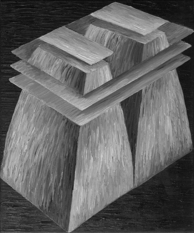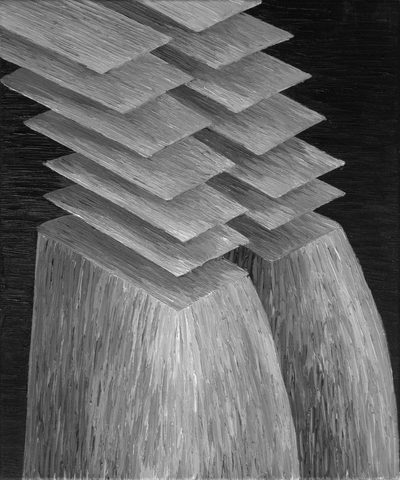 Проекционное пространство ее работ — это не только иллюзорное пространство нарисованного мира, который находится по ту сторону холста, — это также и необходимое условие самой возможности зрения. Кроме того, оно имеет и психологические аспекты. Центральная перспектива находится в таком же отношении к глазу, как картина — к камере-обскуре. Возможно, работы Беатрикс Сунковски дают своего рода ироничное пояснение к подобной «оптике одного глаза». При ближайшем рассмотрении мы замечаем, что присутствующие в ее работах геометрические формы ставят под вопрос саму логику перспективного изображения. Трехмерные образы неожиданно переходят в плоскость, а край плоского предмета становится входом в колодец. В ходе восприятия ее картин предметом исследования становится сам взгляд зрителя: он обращается к своим собственным возможностям, в то время как воспринимаемые им картины все больше отходят на второй план.