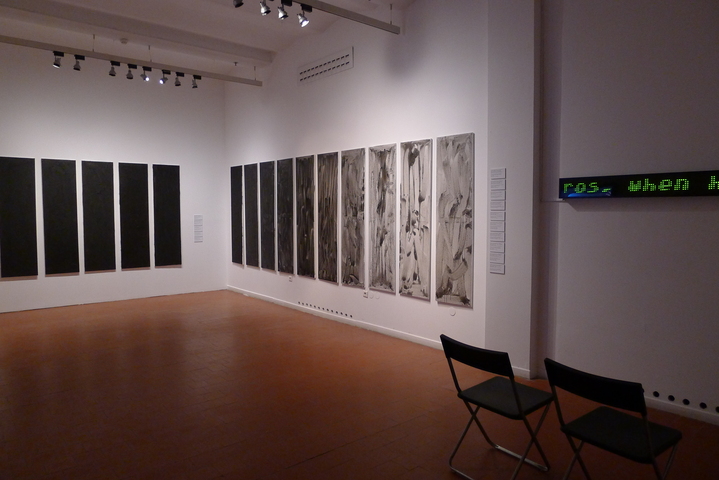 Юрий Альберт показывает работы из двух своих проектов. В одном случае это монохромные абстрактные полотна (размеры каждого из которых совпадают с размерами тела автора — его ростом и шириной плеч), написанные пеплом книг из личной библиотеки («Мои любимые книги»). Во втором — бегущая строка, воспроизводящая сочинение Филострата Старшего (170–247 гг. н.э.), в котором подробно описываются давно не существующие (а возможно, никогда и не существовавшие) произведения античной живописи («Картины»). В совокупности они формируют аппарат, обеспечивающий круговую перегонку, бесконечную трансмутацию освоенных (любимых) текстов и отчужденных визуальных объектов. Или, иначе говоря, некий секулярно-эстетический аналог философского эликсира, способного функционировать сразу в двух режимах — и персонального превращения (картины по размеру тела), и обращения слов и вещей.