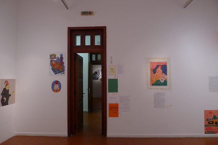 Константин Звездочетов создает для выставки настенную инсталляцию «Приключения фески»: она состоит из большой суммы графических и живописных изображений субъектов в фесках, связанных друг с другом всяческими линиями и стрелочками. Будучи самым остроумным рассказчиком среди концептуалистов, он точно знает, что увлекательный нарратив — неважно, устный, письменный или в картинках — уже сам по себе является «умной машинкой», а потому экономно обходится исключительно иллюстративно-графической конструкцией. Эта конструкция напоминает, конечно, и традиционное генеалогическое древо, но более всего обобщенное наглядное пособие коммунистических времен с его вдохновенно-бюрократическим формализмом. С единственным, но при этом решающим отличием. Звездочетовская изобразительность прямо происходит от карикатуры: он заимствует свою визуальную стилистику у художников сатирического журнала «Крокодил», бывшего любимым изданием многих поколений советских людей. Но карикатурность «Приключения фески» не просто визуальна, веселый абсурд пронизывают саму структуру инсталляции, все связи которой носят формальный, гротескно симулятивный характер. Механизм исправно работает, и единственный продукт, который он производит, это бесшумный «гул языка» (Ролан Барт), чистая материя эстетического удовольствия.