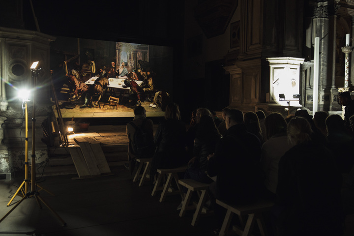 Главный герой работ Тинторетто — пространство. Это не только место, для которого создавалось произведение, но воплощенная в его живописи бесконечная вселенная. Подход Тинторетто революционен для его времени и близок современным медиахудожникам: на первый план в его творчестве выступает идея иммерсивности — погружения в пространство. Такого подхода придерживаются и художники, которые создадут четыре инсталляции специально для церкви Сан-Фантин.